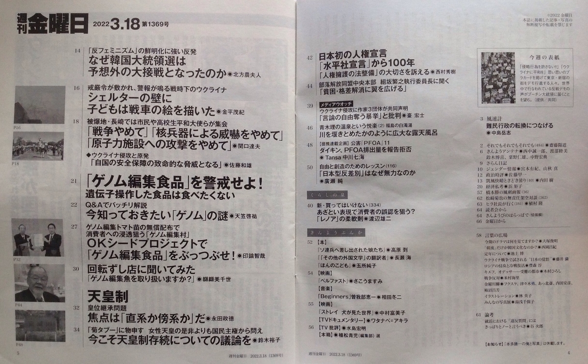 ![週刊金曜日 2022年3/18号[雑誌] 週刊金曜日 2022年3/18号[雑誌]](https://m.media-amazon.com/images/I/61qqc5CWBSL._SL500_.jpg)
